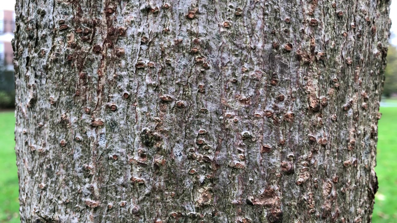The bark becomes rough with a shallow wrinkly gray-brown ridge pattern. The bark of the branches is first reddish-brown and later light gray. It is light gray to light brown and develops more prominent fissures and long plates with age.